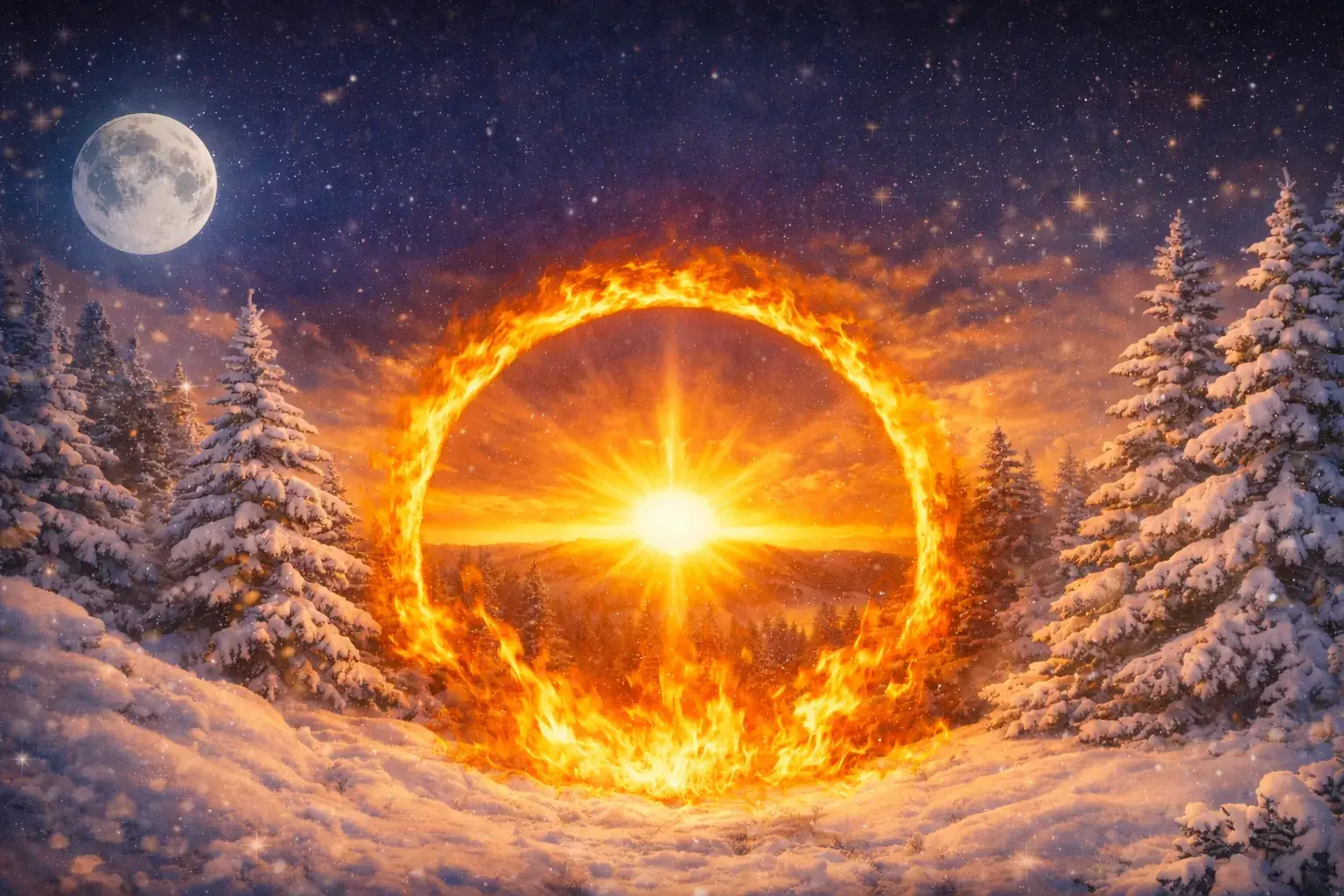 Зимнее солнцестояние — это самый короткий день года. В 2025 году оно приходится на 21 декабря. После этой точки день начинает понемногу расти, а ночь — отступать. Для Колеса Коляды это особая дата: с 22 декабря начинается новый круг.